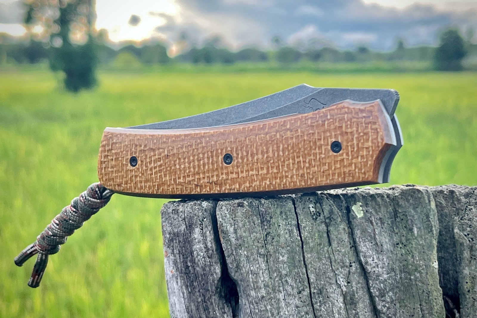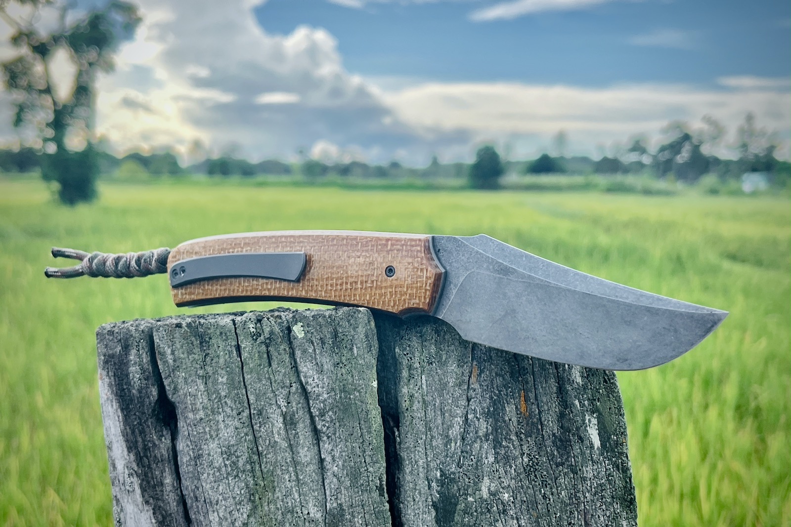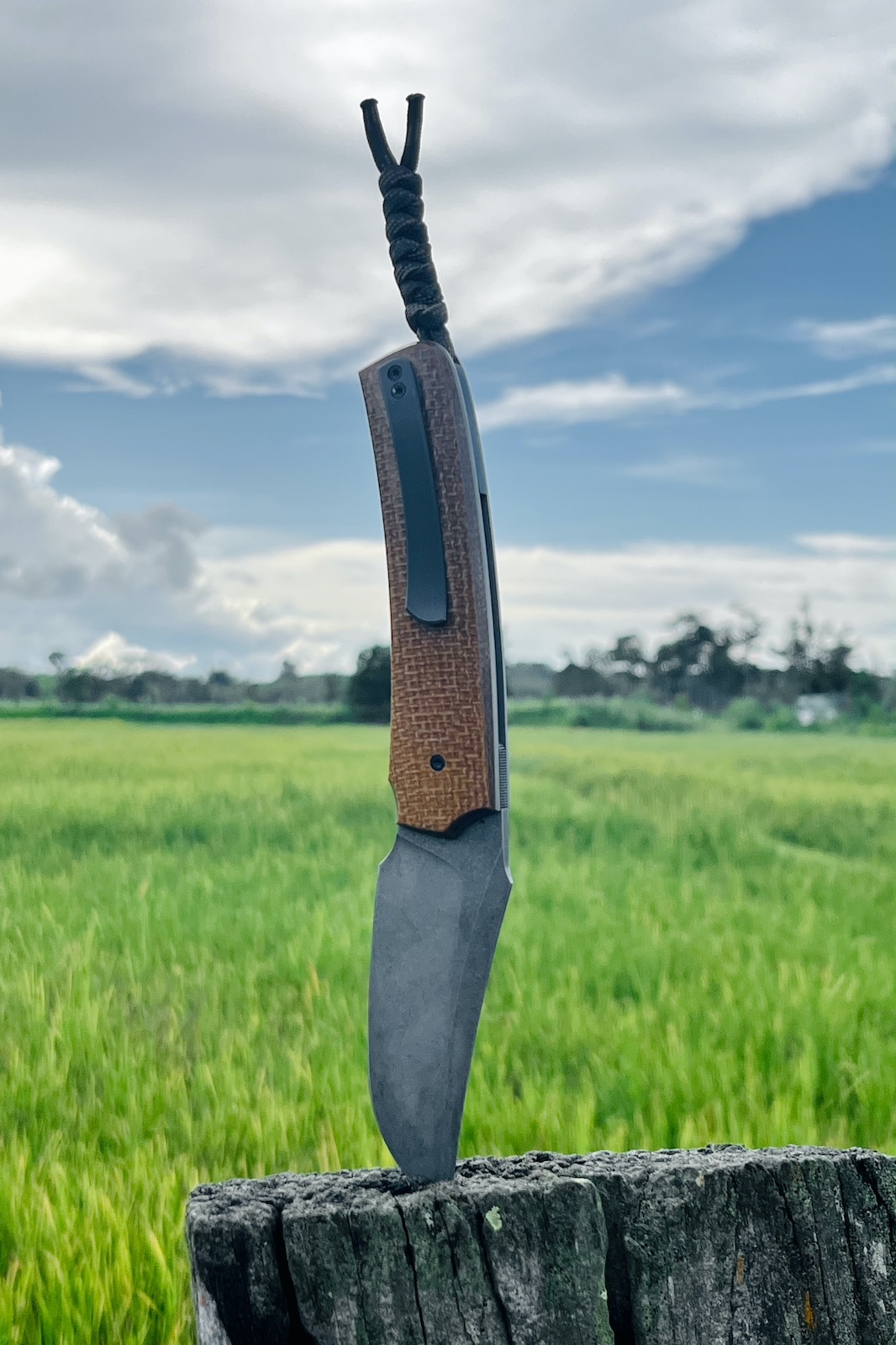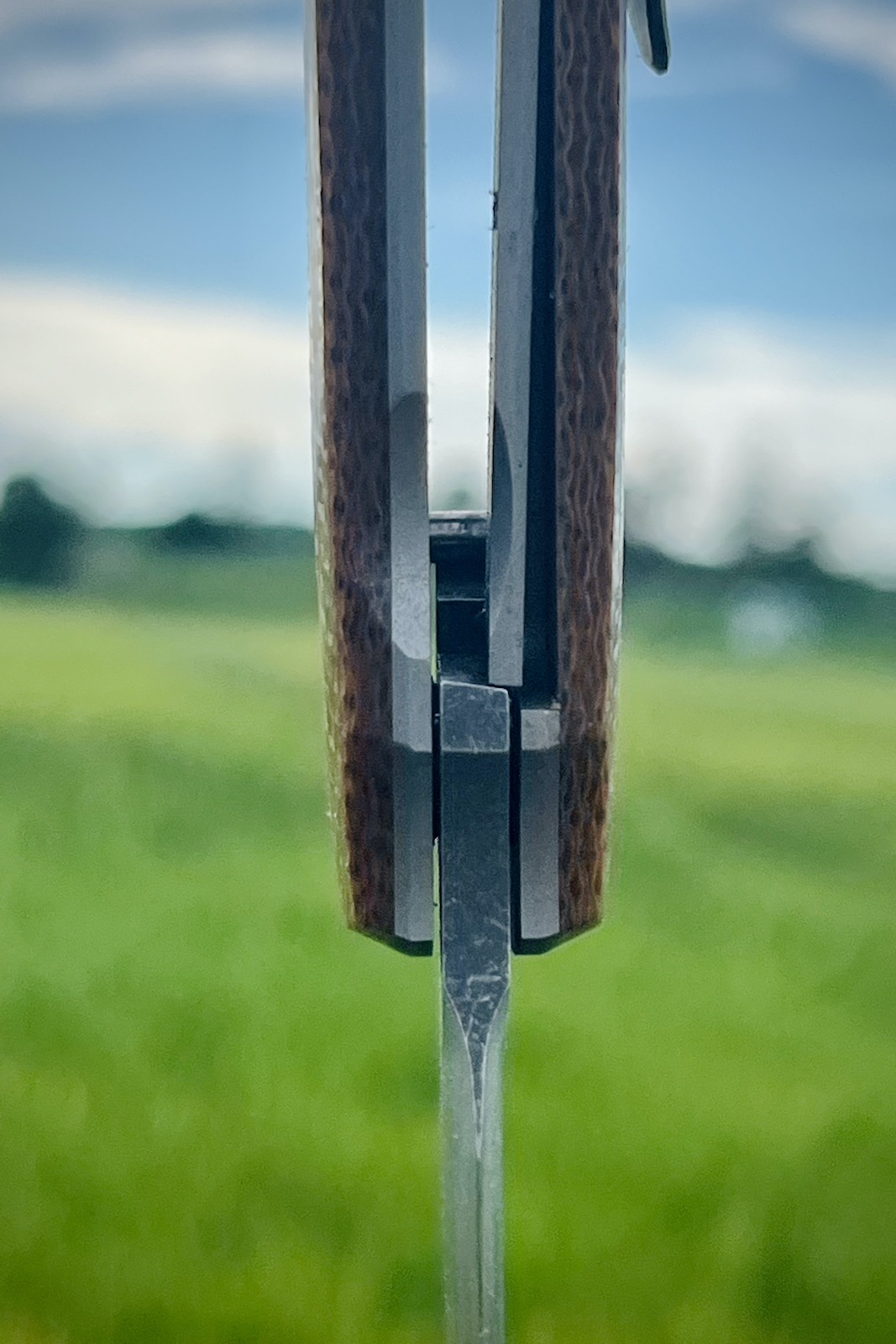 Deuxièmement les matériaux : le micarta du manche est superbe, mais pour un EDC c’est aussi un matériau très robuste qui ne craint vraiment pas grand chose, et notamment pas l’humidité. Les platines en titane aident à la légèreté mais surtout à l’équilibre qui est parfait dans la main, et enfin la lame…