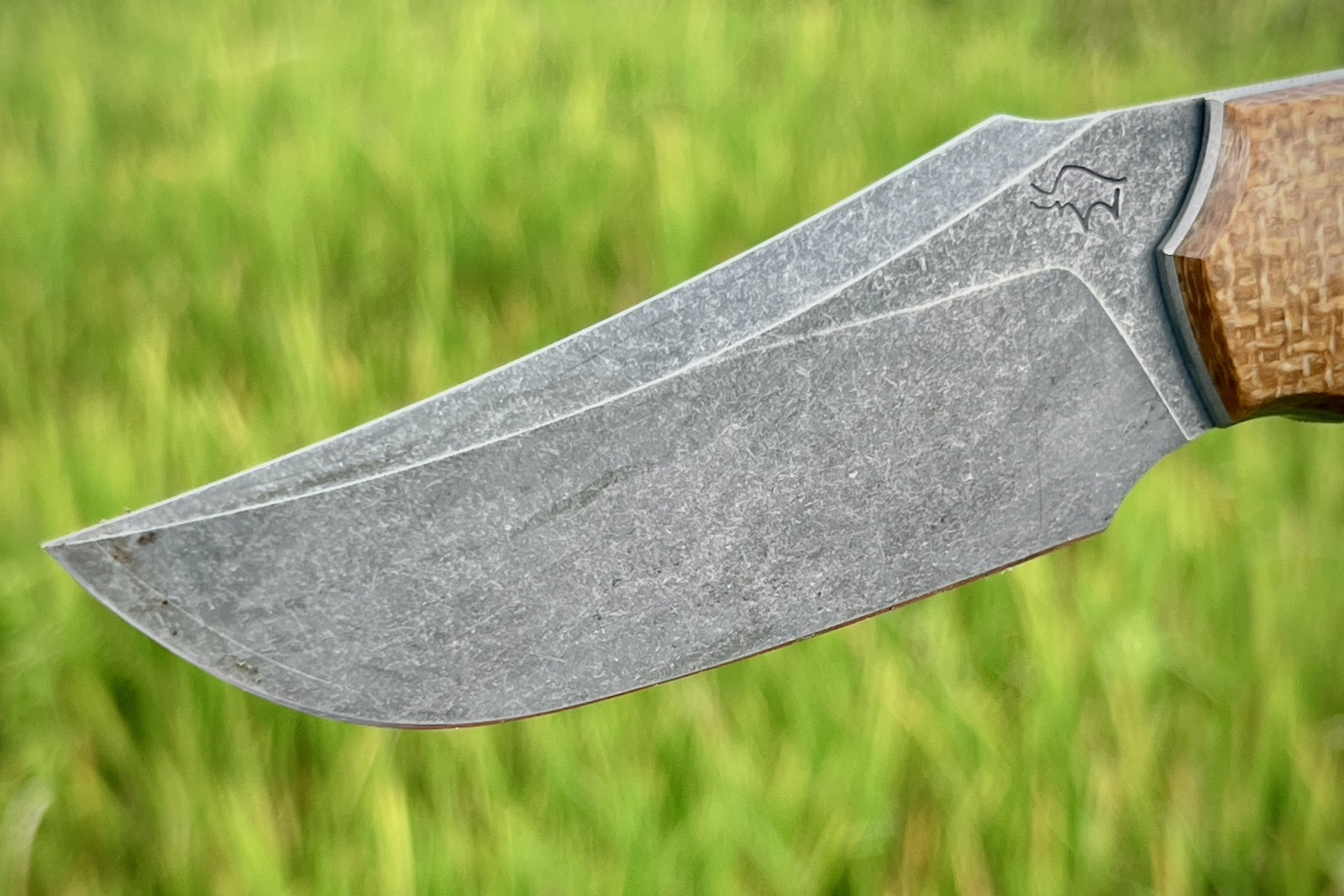 Et autrement, une lame solide et efficace n’empêche évidemment pas le plaisir esthétique, quelle ligne superbe ici avec ce faux contre-tranchant ! Pis c’est une lame très large donc une longue émouture permettant un tranchant vraiment rasoir malgré l’épaisseur assez large au dos : lame à la fois solide et rasoir.