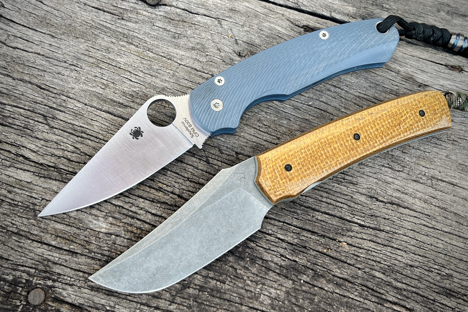 Et on voit bien sur cette photo de comparaison que les deux couteaux sont de taille très similaire, le Poggetti gagne même en encombrement avec un manche légèrement plus court pour une lame de longueur pourtant quasi identique. Autre point, il bénéficie d’un « choil » comme le Spyderco, cet espace découpé dans la lame pour la prise en main, assurant ainsi une prise à la fois confortable et précise pour le contrôle de la lame, quelque chose que j’apprécie beaucoup !