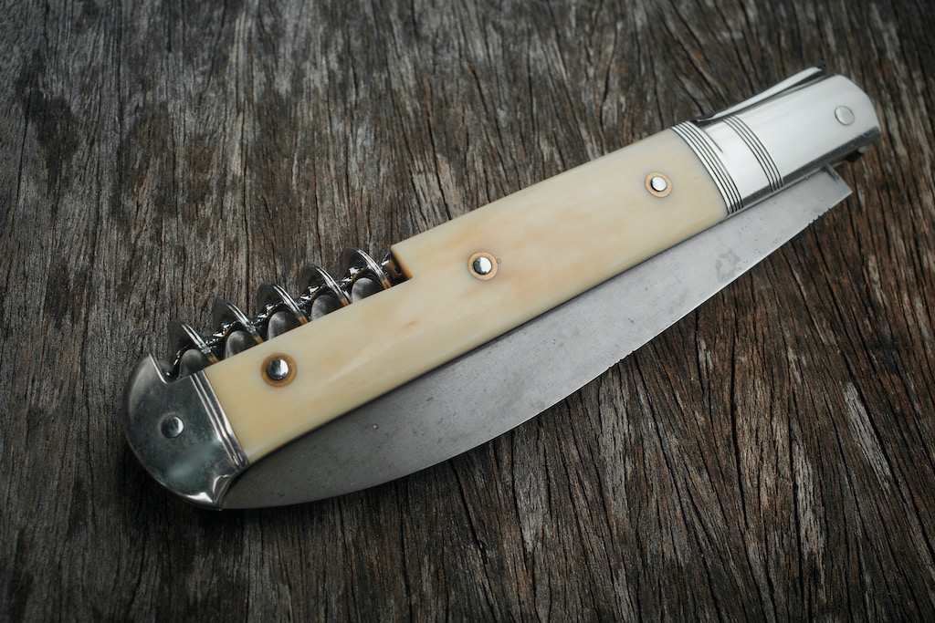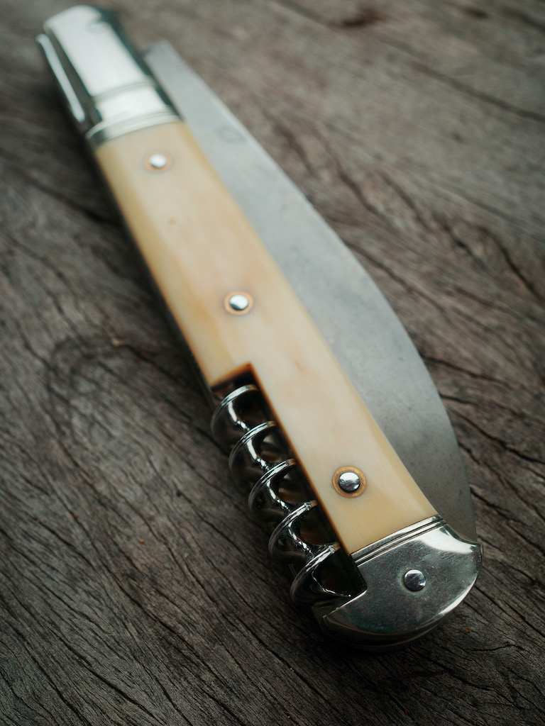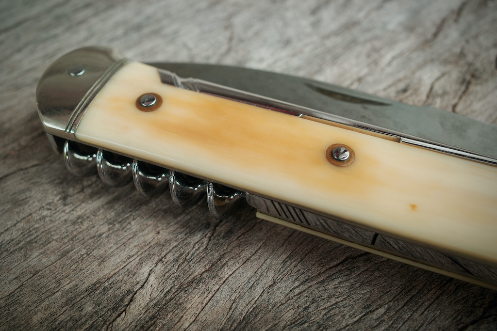 Il est particulièrement pointu et effilé sur ce couteau, vraiment ça pique ! Et comme pour le tire-bouchon, c’est l’intégration parfaite dans le manche que je trouve superbe :